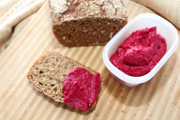 Ja sehr gute Idee, aber Rote Beete Hummus ist nicht so der Knaller bei den Kindern.